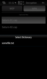 When the WPA security type is chosen then also a button for selecting a dictionary appears.
