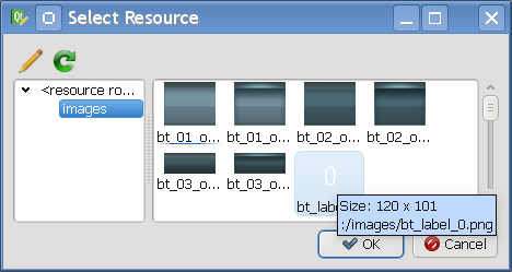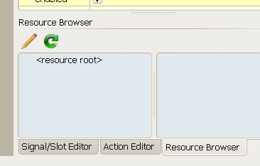 - Next we are going to create a Qt Resource file from the images that we just downloaded so that we can use them in our UI. Click on the pencil on the Resource Browser.