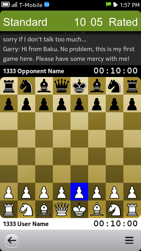 Miniature: the square of a valid piece selected turns blue.