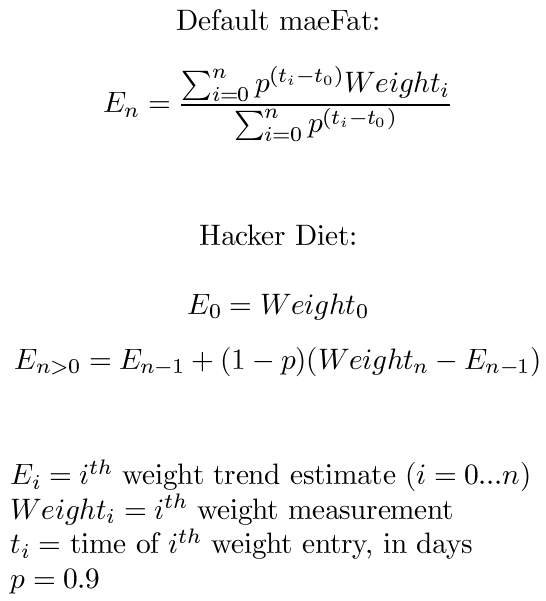 Shows the formulae used for calculating weight trends