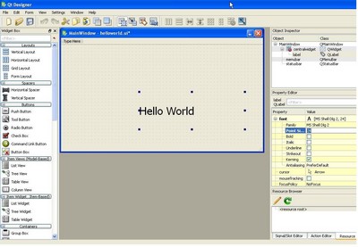 • Now save your form. File->Save As helloworld.ui