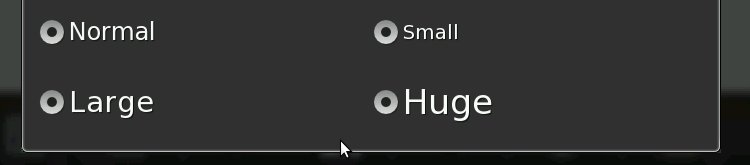 /* Create the actions */ a1 = gtk_radio_action_new("small", "Small", NULL, NULL, 0); a2 = gtk_radio_action_new("normal", "Normal", NULL, NULL, 1); a3 = gtk_radio_action_new("large", "Large", NULL, NULL, 2);