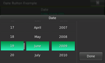 Date buttons work just like a picker button but use a date selector instead of a general touch selector (see figure 14).