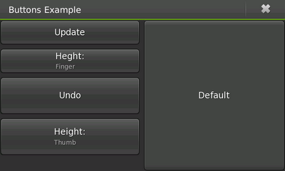 Apart from the automatic height (button on the right in figure 18), a Hildon button is usually set to a "finger" or "thumb" heights like the buttons labeled "Update" and "Undo" on figure 18 respectively.