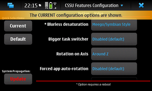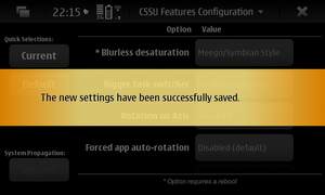 * Some of the options get immediately active as soon as you press the "Update" button. * Others need the hildon-desktop to be restarted. For those a menu option is available "Restart hildon-destop".